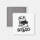 Este magnata adorável apresenta uma design engraçada de um rosto sorridente em uma cadeira dobrável com as palavras "Sit & Go." Perfeito para adicionar um toque de humor à geladeira ou ao conselho magnético.