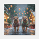 Este design festivo captura o espírito alegre da temporada de férias, apresentando cães adoráveis. Aninhado em um país das maravilhas de inverno, completo com uma árvore de Natal decorada e presentes lindamente embrulhados. Flocos de neve caem suavemente, adicionando um toque mágico à cena, enquanto as cores vibrantes das decorações de Natal criam uma atmosfera quente e alegre.