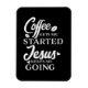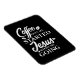 Este ímã flexível apresenta uma design de tipografia de aspas cristãs em um moderno roteiro branco que diz "Café me Inicia Jesus me Mantém Indo". Mostre-o em sua casa ou escritório. De nossos corações aos seus, aproveite!