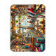 A pintura aquosa captura vividamente o charme vivo e eclético de um pequeno compro de café em Melbourne. O mobiliário inigualável, incluindo cadeiras coloridas e mesas de madeira, está disposto em locais próximos, criando uma atmosfera acolhedora e movimentada. As paredes são uma colagem de murais vibrantes, posters e decorações peculiares como plantas enforcadas e relógios antigos. Uma barista em um avental brilhante trabalha atrás de um contador compacto, amontoado com frascos de biscoitos, grãos de café e uma máquina de café expresso. As prateleiras cheias de livros, canecas e cestos brancos melhoram o caráter único do café. Patrões estão sentados em grupos animados, tomando café de copos brilhantemente coloridos, trabalhando em laptop ou engajados em conversas vivas. O brilho quente das lâmpadas Edison e a luz natural macia que fluem através de uma grande janela adicionam um toque acolhedor a este espaço vibrante e caótico.
