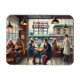 Presente perfeito para o amante de viagem e café. O café olhando para os bolinhos do mercado Pike Place com energia silenciosa enquanto a multidão matinal se filtra. Através de janelas grandes, o símbolo vermelho icônico "Public Market Center" brilha com ligeireza na luz superficial de Seattle, enquadrado pelo movimento de pessoas que se quebram entre as bancas do mercado. Dentro, o café se sente quente e convidativo, com paredes de tijolos expostas, mesas escuras de madeira e luzes pingentes de estilo industrial lançando um brilho suave. Uma mulher em uma capa de chuva de marinho fica perto da janela, juntando notas em um diário de couro enquanto cava de uma xícara de cerâmica de café a vapor. Por toda a sala, dois amigos riem-se dos croissants da manteiga, seus guarda-chuvas brilhantemente coloridos se inclinando contra suas cadeiras, mergulhando pudins esmaecidos no chão de madeira polido. O balcão é uma colmeia de atividade, com uma barista derramando lattes de gelo em copos enquanto uma fila de clientes, grudada em casacos de lã e cachecóis, espera pacientemente pela sua vez. Um jovem com fones de ouvido digita furiosamente em seu laptop em uma mesa de alto nível, ocasionalmente brilhando para ver o mercado em chamas abaixo. Perto da porta, um casal idoso, embrulhado contra o frio, compartilha um cone de mirtilo e admira a visão da frente de água espreitando pelo mercado. As paredes são decoradas com fotos antigas do mercado e trabalho de arte local em tons de vermelho profundo, lacre e amarelo mostarda, ecoando as cores do próprio Pike Place. Plantas plantadas adicionam um toque de verde ao interior aconchegante, enquanto lá fora um artista de rua enfia uma guitarra, sua música fracamente audível através do vidro grosso. O café está vivo com uma mistura de tons quentes para o interior e as cores legal e úmidas da icônica frente d'água de Seattle.