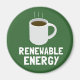 Vá verde e tome sua cafeína também. Este gráfico simples e engraçado mostra a fonte de energia mais renovável, sustentável e ambientalmente amigável de todos - uma xícara de café! A caneca de café branca fica sobre o texto branco que diz, "Energia Renovável." Faz uma declaração humorística para o seu ambientalista favorito!