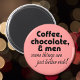 Um café engraçado compra presentes cor-de-rosa, presente de aniversário para mulheres imãs de geladeira. Café, chocolate, e homens algumas coisas são muito mais ricas!