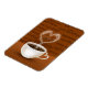 Uma ilustração de uma taça de café com uma caneca branca de café quente com fumaça em forma de coração sobre fundo marrom com tipografia na parede.