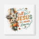 Design cor de cor, empírica, apresentando uma cena de outono/outono com abóboras, cruz de madeira e flores de outono. O texto de inspiração colorido diz: "Cai por Jesus que ele nunca sai". Esse design está disponível em uma grande variedade de produtos.