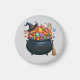 Caldeirão do ímã Giggle & Gummies. Um boneco de caldeirão alegre, recheado de doces explodindo como confete, orgulhosamente esportando um chapéu de bruxa. Seu companheiro de vassoura se inclina perto, claramente à espera de um decolado carinhoso, o mais feliz movente de bruxas movido a açúcar do Halloween!