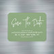 Ímã de geladeira save the date com caligrafia moderna na cor sage green. Design com um visual minimalista simples apenas com texto.