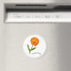 Flor laranja com gotas de chuva em pétalas, caule verde e folhas. Título "Calendário" em texto curvo na parte inferior.
