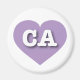 Este ímã apresenta um coração lavanda contendo as letras maiúsculas, brancas e em negrito CA, a abreviação oficial para a Califórnia, o estado ouro.