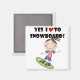 Um design bonitinho de snowboarder em T-shirts, canecas, cartões, autocolantes, capuzes, sacos de tote e outros roupa e presentes com uma figura de palitos, moça de snowboarder e texto com a seguinte redação: "Sim, Eu Adoro Snowboard!".