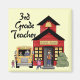 T-shirts, canecas, cartões, autocolantes, ímanes, botões, sacos de tartaruga e outros presentes de professores do 3º ano, com uma escola vermelha e um design de ônibus.