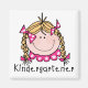 Uma menina adorável com cabelo louro em tranças e texto que lê "Jardim de Infância" aparece nessas camisetas infantis, adesivos, cartões, canecas e muito mais!