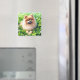 Imã de geladeira com um adorável cão Pomeraniano laranja, a colocar um campo de trevo com alguns shamrocks. Uma Rua fofa, presente de Patrick para donos da Pomerânia e amantes de pom.