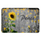 Desfrute dessa imagem de um campo de girassóis em preto e branco com os florescimentos de girassol em amarelo brilhante no sol de verão. A palavra ousada de "Paz" à direita do girassol em letras de cinza. Uma mensagem perfeita para qualquer superfície em casa ou no escritório.