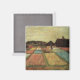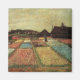 Campos de Bulbos de Vincent van Gogh é uma antiga pintura de paisagem floral pós-impressionista de arte fina. Um campo agrícola de flores da primavera em flor com um agricultor a caminhar, o céu está repleto de nuvens cinzentas de tempestade. Uma casa de fazenda está ao longe.