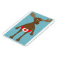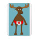 Um desenho animado do alce excelente canadense vestindo seu roupa patriótico com fundo azul. Um bom souvenir para lembrar sua viagem ao Canadá. Também é uma maneira divertida de mostrar seu espírito canadense enquanto mantém seus importantes documentos na geladeira para um acesso fácil.