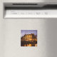 Fotoímã de Souvenir com casernas de canal de Amsterdã no estilo tradicional ao lado de uma ponte sobre Prinsengracht e canais de Brouwersgracht iluminados ao anoitecer durante a Hora Azul, na Holanda.