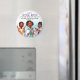 Uma trío feminina afro-americana vestida de branco com faixas coloridas individuais canta louvores para as festas de fim de ano, fazendo um barulho alegre com as mãos, voz e instrumentação.