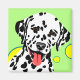 Arte colorida do cão que caracteriza o Dalmatian branco com pontos pretos contra uma luz - fundo verde e círculos amarelos