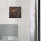 Design apresenta um retrato fotográfico de um cão com cabelo castanho sobre fundo castanho escuro.