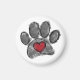 Impressão de pata de cão e aquarela cardíaca em vermelho, preto e cinza. Ímanes personalizados para casas e empresas. Ideia de presente para amantes de cães.