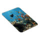 É hora da festa debaixo do mar. Cena submarina, ocupada e caótica, de peixes tropicais negros e brancos listrados misturando-a com o peixe dourado.