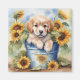 Watercolor Sunflower Puppy, este design apresenta um Puppy fofo fofo e adorável em um Balde com Girassóis feito em aquarela.