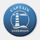 Imagem do frigorífico na moda round com Capitão ou outro título, seu nome personalizado e um farol clássico personalizado com ondas oceânicas em branco em tons de azul-marinho ou escolha cores de fundo para corresponder à sua decoração. Faz um presente único excelente.