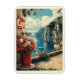 Descubra a beleza de Capri com este poster impressionante com uma estrada litorânea pitoresca, águas cristalinas e um arranjo floral cativante. Perfeito por enviar um pedaço de paraíso para os entes queridos.