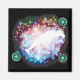 Essa pintura retrata uma cabra branca entre estrelas coloridas do universo, com uma estrela verde e negra design da constelação, Capricórnio. Copyright 2017 Kimberly J Tilley.