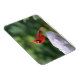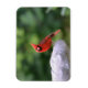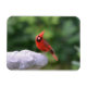 Este ímã flexível apresenta um cardeal macho vermelho sentado à beira de um banho de pássaros em Nova Inglaterra