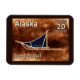 Apresenta o carimbo de correio de 20 Nugget emitido por um imaginário independente do Alasca comemorando a retomada do trenó de cachorro. Um trenó de cão moderno é representado sobreposto a uma imagem de fundo de pele de rena. O trenó tem um saco azul esportando a bandeira do Alasca e o texto lendo "ALASKA POSTAL SERVICE". Texto adicional diz: "Alaska", "POSTAGE 20 NUGETS" e "Dog Sled Mail".