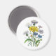 Ilustração botânica antiga de flores-do-mar em azul, amarelo e branco.