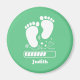 Este ímã verde personalizado foi projetado tendo em mente mães e provedores de assistência. Quer você seja uma futura mãe, pediatra, obstetra, profissional de família, parteira ou profissional de família, este ímã personalizado é uma adição divertida ao seu lar ou escritório. Apresentando um par de adoráveis pés de bebê e um sinal de carga abaixo, este ímã é um presente divertido para uma mãe expectante e para aqueles que se preocupam com mães e pais grávidas e que trabalham em torno de recém-nascidos.