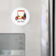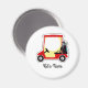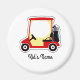 Um carrinho de ouro vermelho visto lateralmente, completo com malas e paus, sem pessoas, contorno branco em volta do "estilo adesivo"