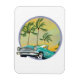 Carro clássico no logotipo do automóvel de transporte estilo retrorreflector do crepúsculo.