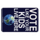 Eu estava corrida por um bairro calmo de Denver um dia de outono. Os pátios eram cheios de folhas, decorações de Halloween, e placas. A maioria dos sinais políticos, mas também o ocasional sinal "Drive Like Your Kids Live Here" . Enquanto corria, minha mente começou a amalgamar os dois tipos de sinais. No começo, eu cheguei à ideia de "Vote Como Seus Filhos Vivem Aqui" (pensando nisso como votar como seus filhos moram nesta casa). Depois, uma vasta imagem de Spiritus Mundi perturbou a minha visão: A Terra. Votem Como Seus Filhos Vivem AQUI... Eu sabia imediatamente que a mensagem deve ser compartilhada.