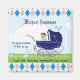 Um bebê novo e fofo continua apresentando um bebê em uma carruagem de bebê em vintage azul em um gramado, manchado com pássaros azuis e coelho azul, contra um céu azul pastel com nuvens brancas indefinidas. O nome da criança encontra-se no centro de topo, em letras decorativas grandes, e, por baixo e por baixo, em caracteres azuis, a data de nascimento e a hora de nascimento, a duração e o peso da criança. Uma manutenção perfeita para o novo menino. Tudo isso em um fundo azul, branco e rosa (diamante) argyle. Uma ideia de presente de excelente para novos pais.