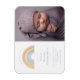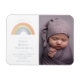 Este anúncio moderno de nascimento de um bebê apresenta uma ilustração original de um arco-íris em cores pastéis, em conjunto com uma fonte clássica e eterno. Mínimo e elegante, ele anuncia a notícia de sua nova chegada em estilo subestimado. Esta design é unísex, adequada para bebês e meninas, ou para pais que escolham uma estética moderna e neutra.