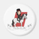 Design com uma ilustração de um cavalo-de-menina giro andando num pônei branco ou num cavalo com um homem negro, um design de fazenda desportivo equestre para crianças de fundo vermelho
