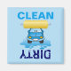 Um carro azul sorridente lavando-se com pincel de lavagem de roupa.