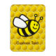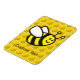 Cartoon voador de abelha sorridente sobre fundo de colmeia de abelha sem costura.