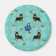 Estilo bonito de desenho animado Miniatura Pinscher com um espalhamento de ossos e trilhas de pata. Este cachorro preto e bronzeado tem um rabo encaixado e cortou orelhas. Este design é destinado ao azulejo sem falhas.