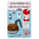 Um imã com um design de trocadilho de café Engraçado que diz "Todas as manhãs meu café é tocado" com uma cena de desenho animado de uma caneca segurando um pote de café na cozinha com outros acessórios de café como testemunhas da rotina matinal. A xícara diz a todos "Passe o ouro líquido e ninguém se machuque!". Este ímã faz um presente bonito para qualquer amante de café.