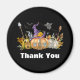 Magnet com uma bela imagem de uma casa de abóbora assombrada com um chapéu de bruxa no topo e fantasmas e morcegos voando por aí.