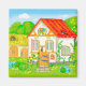 casa de desenho de conto de fadas com telhado vermelho e pátio