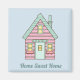 Simples ilustração de uma casa cor-de-rosa sobre fundo azul com texto "Home Sweet Home"