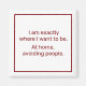 Este ímã é uma vibração. Use-o para declarar sua preferência por uma solidão pacífica. O texto diz, "Estou exatamente onde quero estar. Em casa, evitando pessoas."