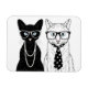 Esta design apresenta uma gata negra vestida de colar de pérolas e um gato macho branco vestida de gravata pontiaguda.