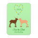 Este incrível ímã mostra um cervo macho e fêmea que se parece com um casal apaixonado. O veado macho (buck) é marrom-escuro e tem grandes galhadas, o veado fêmea (dó) é castanho-paler com manchas brancas. Há um coração sobre o cervo feito de flores margaridas brancas e de copos amarelos. Há texto personalizado dentro no coração para que você possa incluir as iniciais do casal. Este design também tem texto personalizado abaixo da imagem para que você possa usá-lo como um íman de casamento de salvação.